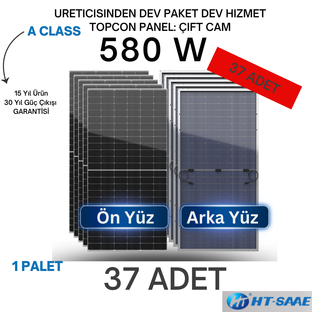 580W  TOPCon Çift Cam Güneş Paneli 1 Palet